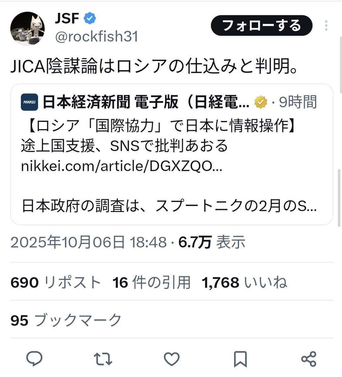 3文字さん、「兵器のみ」を語れば良いのに「それ以外」を語れば幼稚なのがいつもバレてしまう… そもそも現在の「日本政府」はどこの政党が主導しているか理解していないから全く救いが無い💦 既にSNSでの様々な世論誘導工作がバレている政党の与党が調査を命じた時点で信憑性が全く無さすぎる。 x.com/ELFINE001/stat…